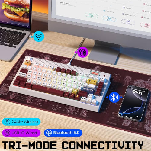 A nostalgic aesthetic with modern tech, these retro typewriter-themed keyboards come with built-in smart displays, high-quality PBT keycaps, and RGB lighting—perfect for gamers and creatives who crave a unique, personalized setup.